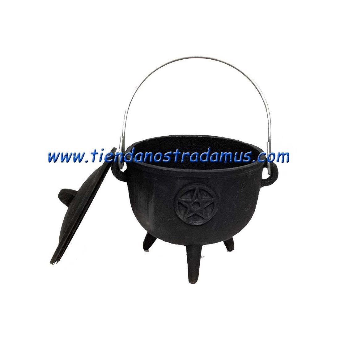 Si lo que buscáis es un caldero más grande, para poder quemar más hierbas en su interior, que tenga más capacidad, este caldero os agradara. De medidas 110x130 mm es ideal para quemar en su interior hierbas, incienso con carbón, mezclas que realicéis, o para consagrar los minerales. Con tapa y el símbolo del pentáculo es ideal para vuestro altar.